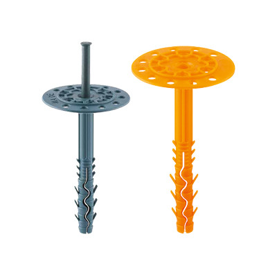 Dämmstoffhalter mit Kunststoffnagel oder Stahlspreiznagel zur Befestigung von Dämmstoffen (Styropor-, PU-Hartschaumplatten) an Außenwänden und Mauern.