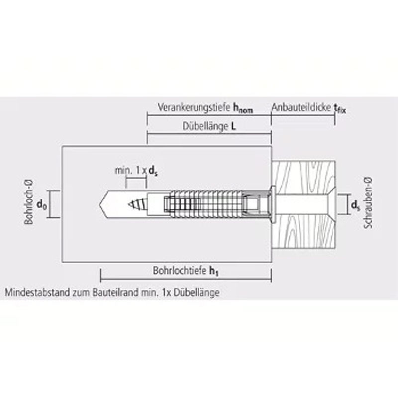 | ✓ | Dübelkragen verhindert das Rutschen des Dübels ins Bohrloch | |